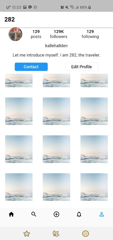 Container로 감싸던 부분을 Expanded로 감싸주니 GridView가 내가 원하던 대로 프로필 아래 부분만 차지했고, 스크롤도 가능해졌다.