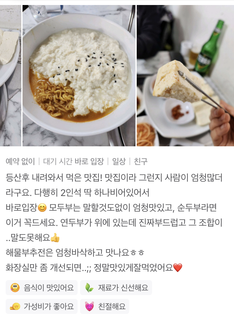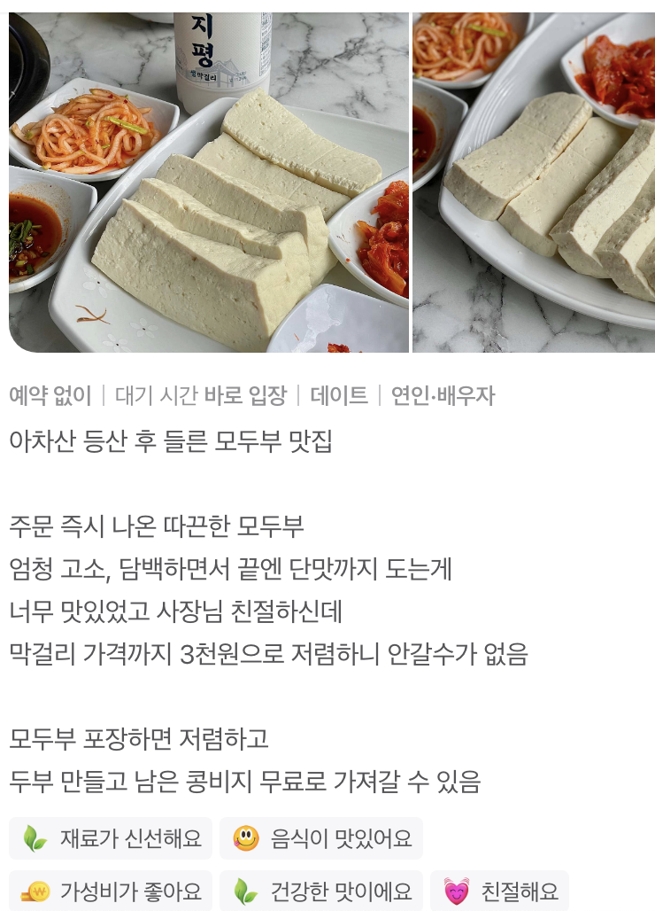 아차산 두부 맛집
