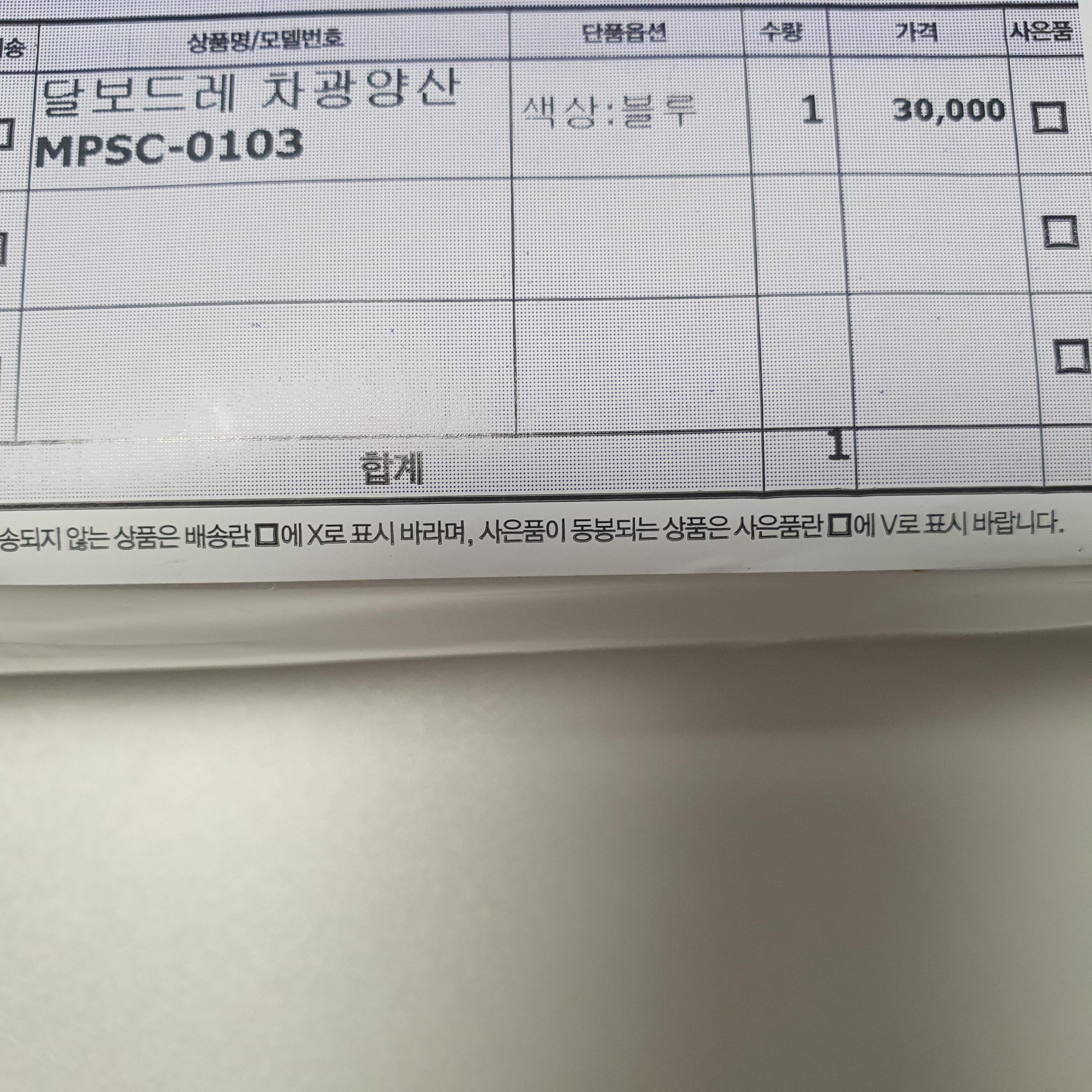 '메트로시티 달보드레 차광양산 블루'라고 써있습니다.